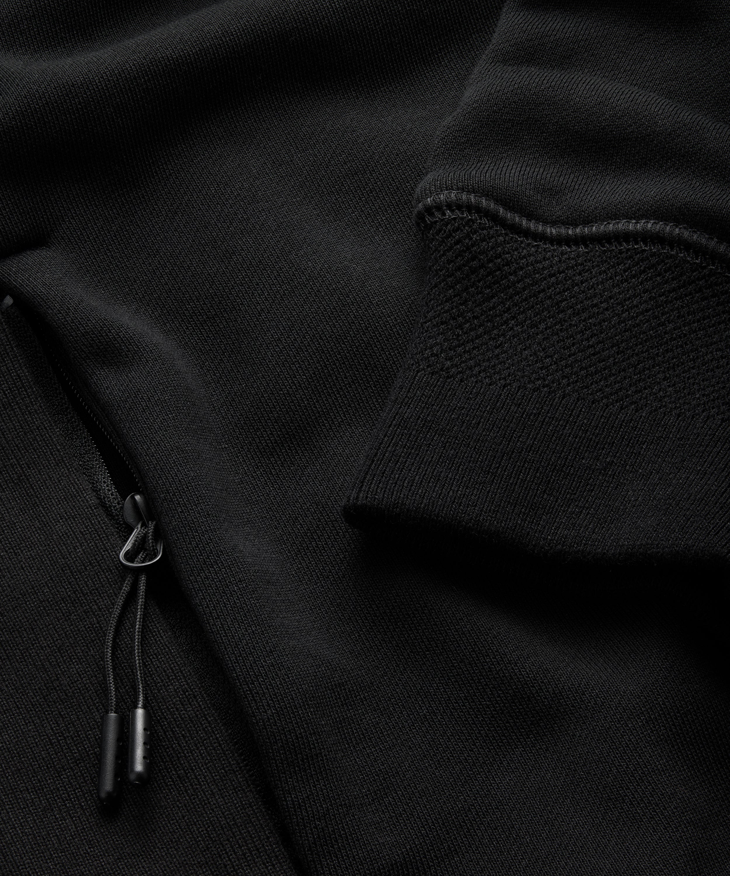 - strukturierte Rippen an Ärmeln und Saum