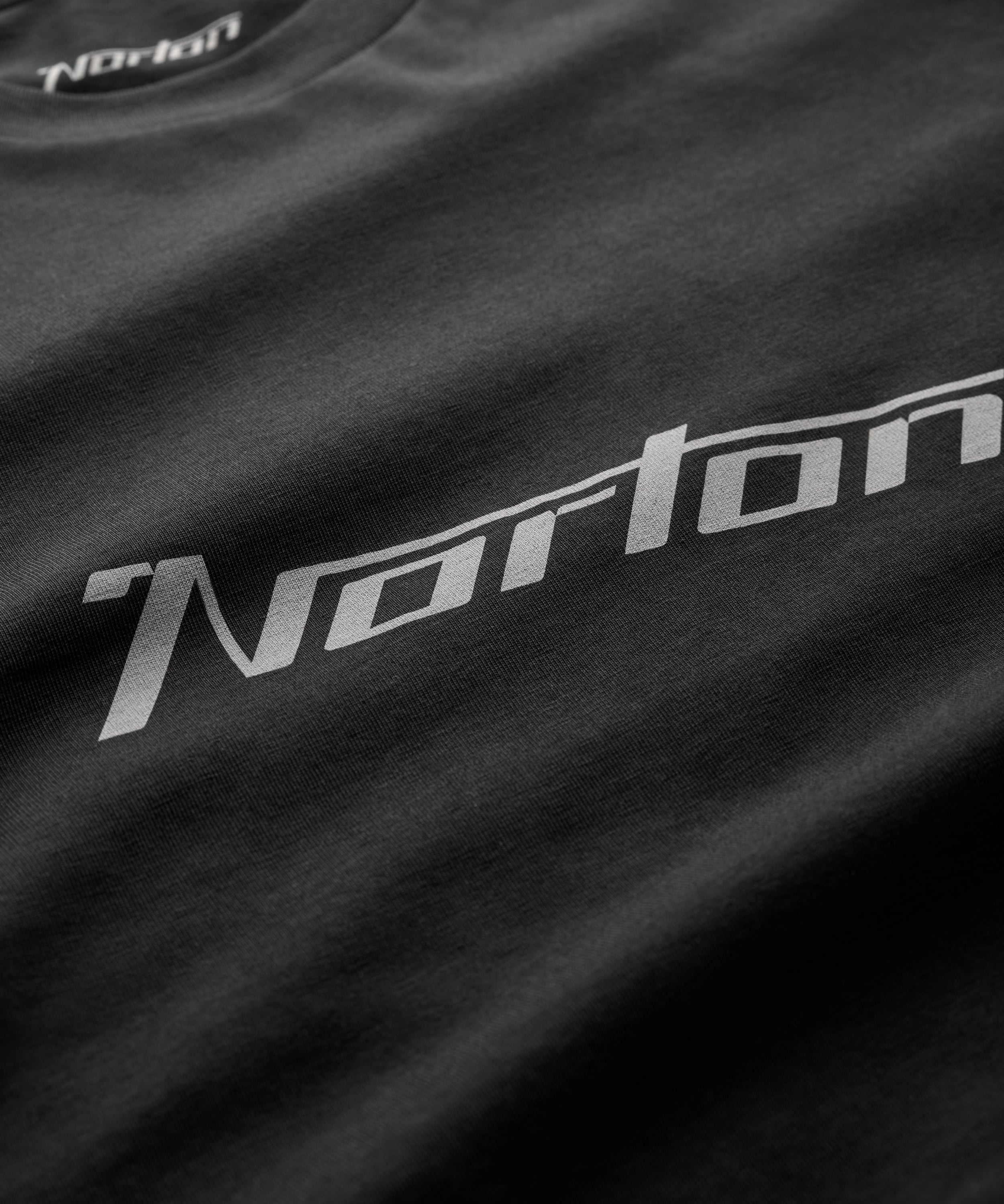 Made from 100% organic cotton, this mid weight, short sleeved jersey T-shirt features a printed 'Norton' logo on the front chest.