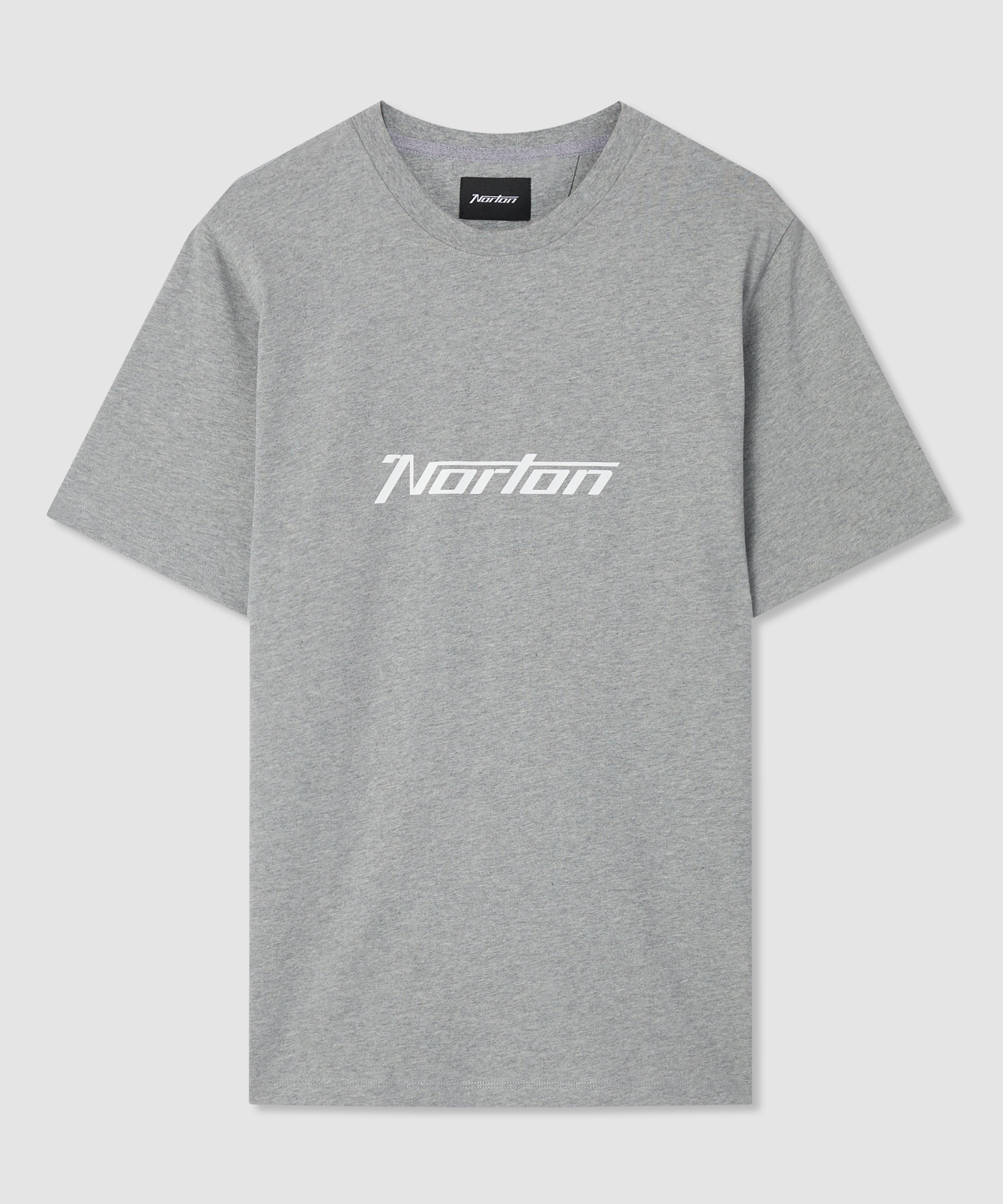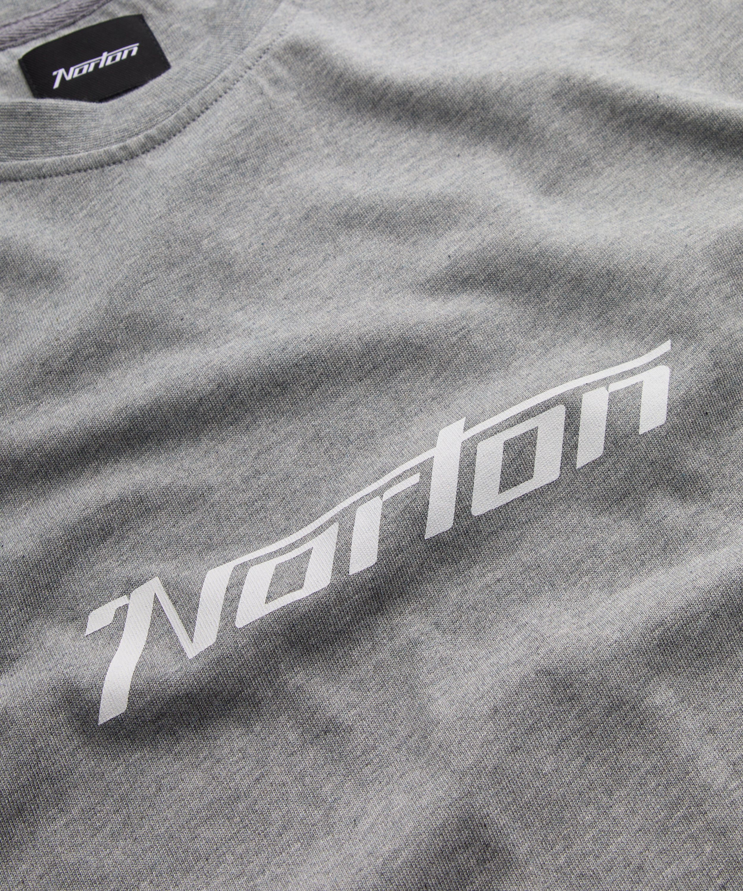 Realizzata in 100 % cotone, questa t-shirt grigio mélange a maniche corte e peso medio presenta il logo “Norton” stampato sul petto.