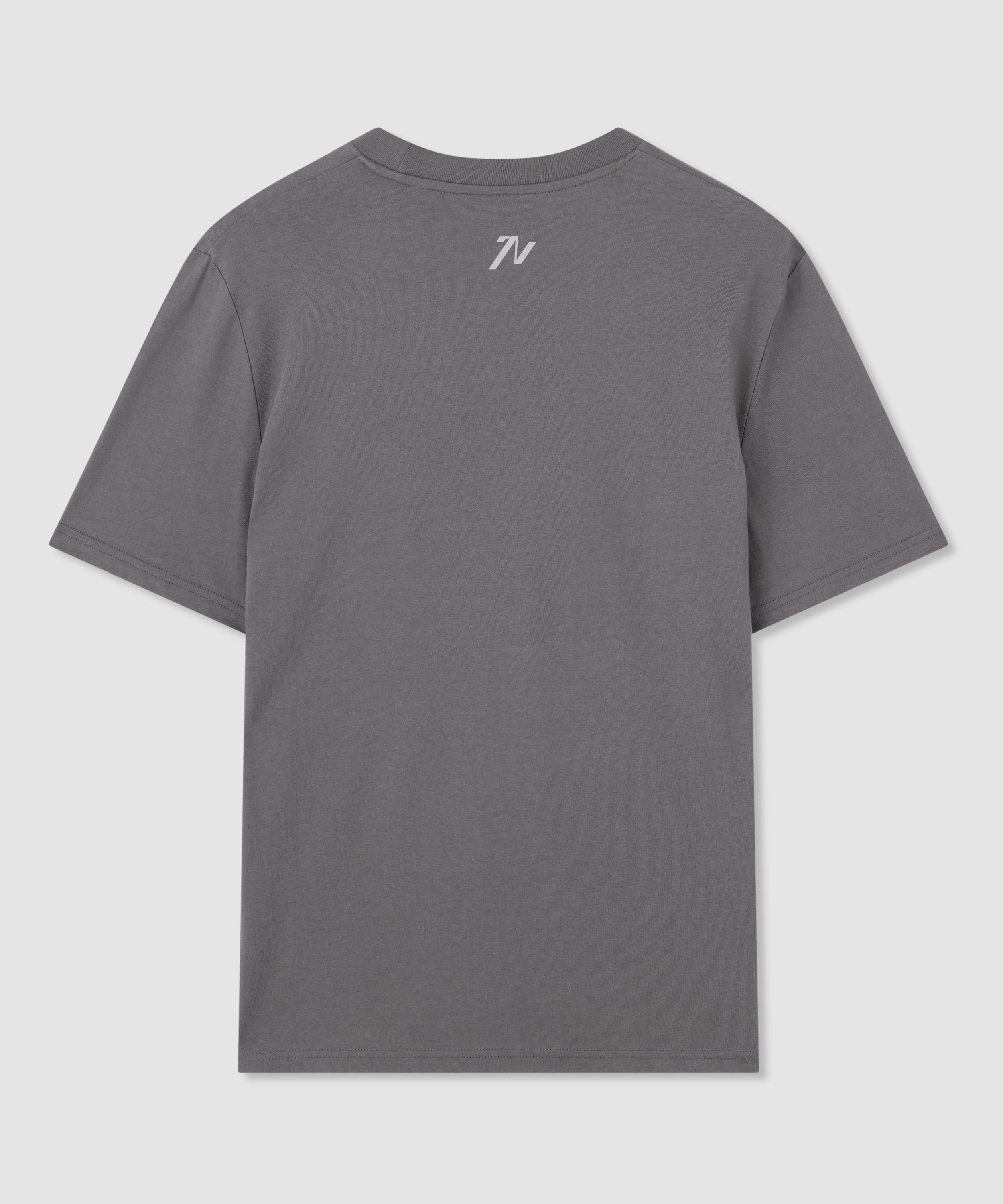 T-shirt grigia di peso medio con grande logo stampato sul petto